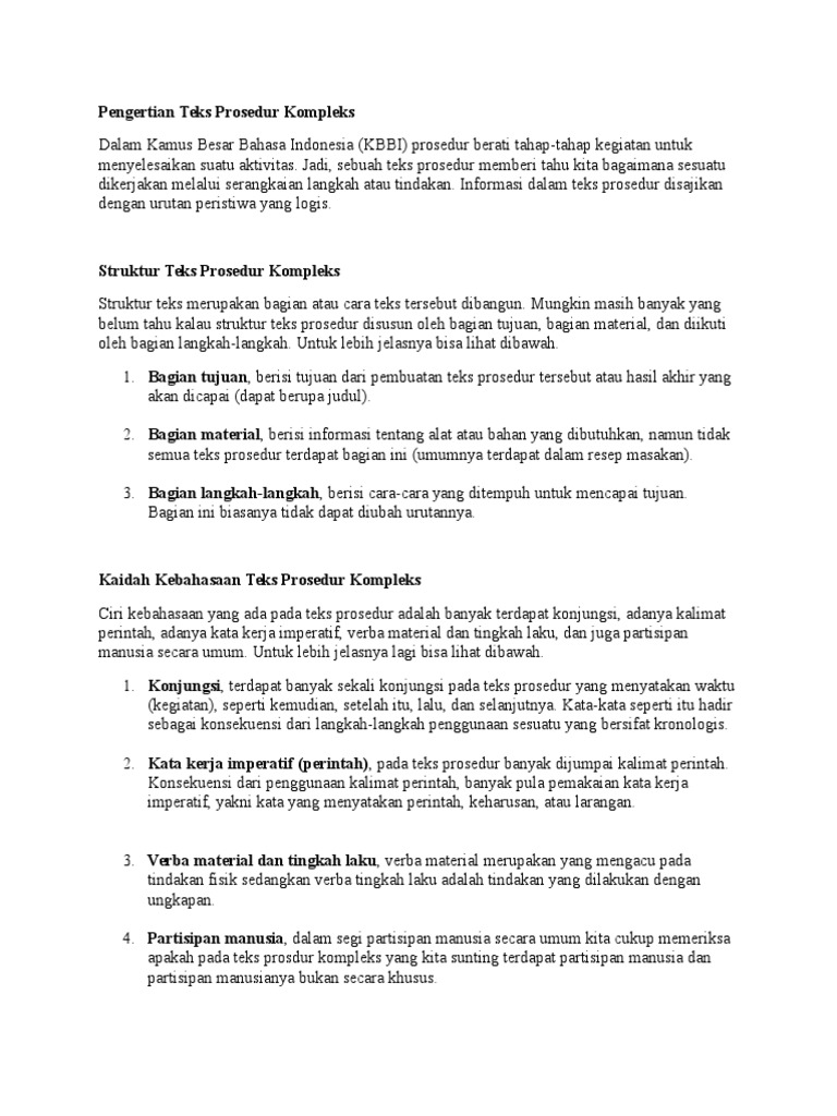 DOC) Teks Prosedur Kompleks (Pengertian | esron nh Silalahi - Academia.edu