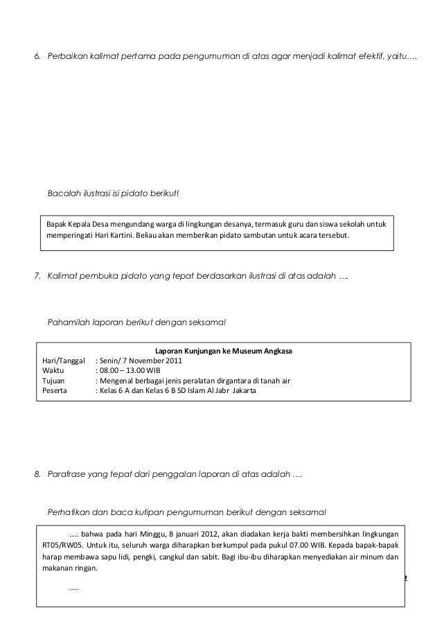 Soal pidato dan pengumuman