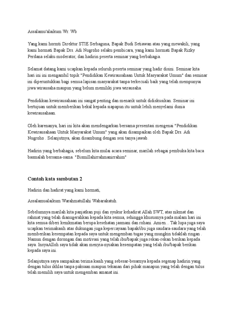 Contoh Kata Sambutan Yang Baik Dan Benar | Blog Pendidikan
