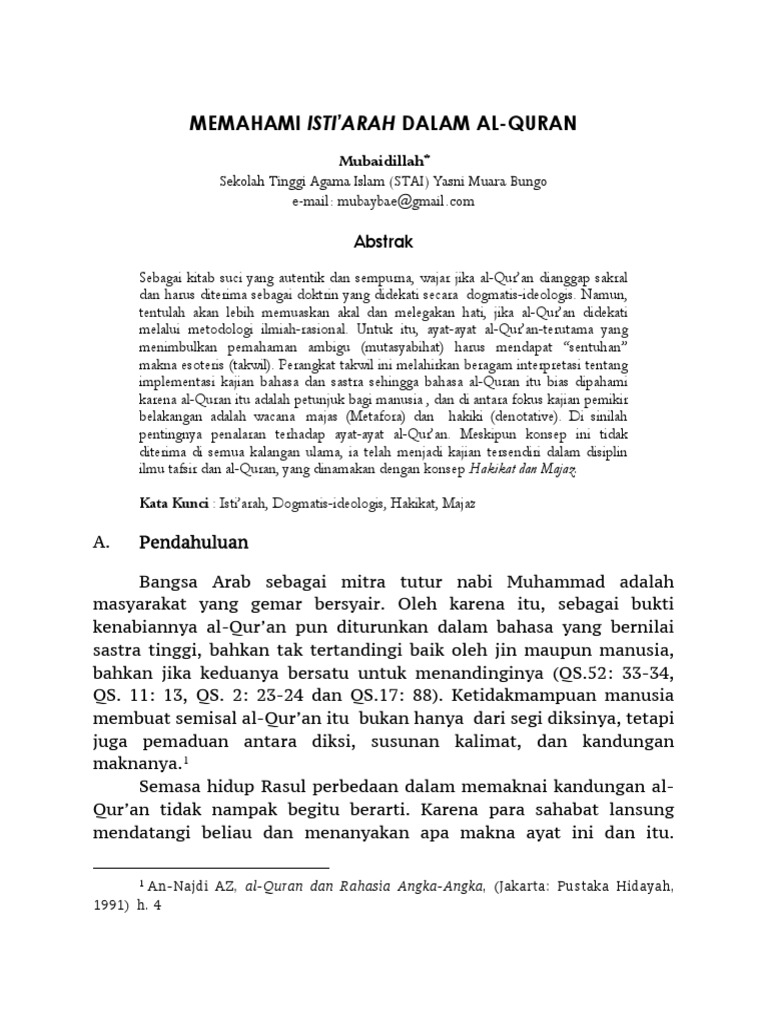 Memahami Isti’Arah Dalam Al-Quran: Mubaidillah