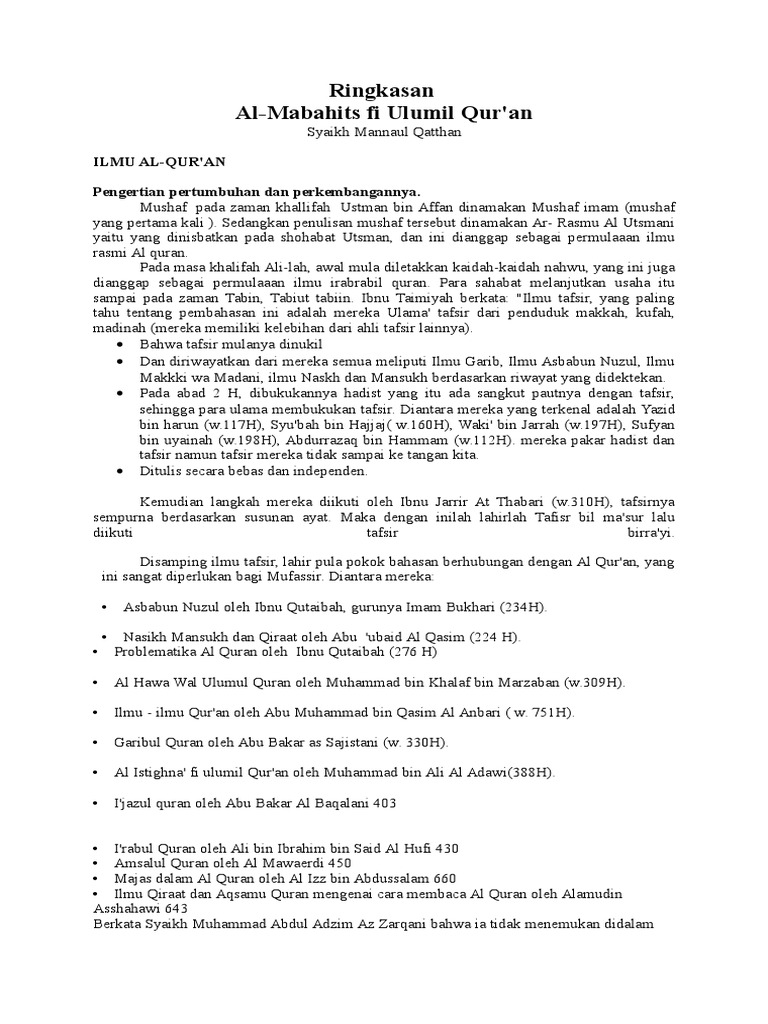 DOC) Ulumul Qur’an | Thoriq Rizkitama - Academia.edu