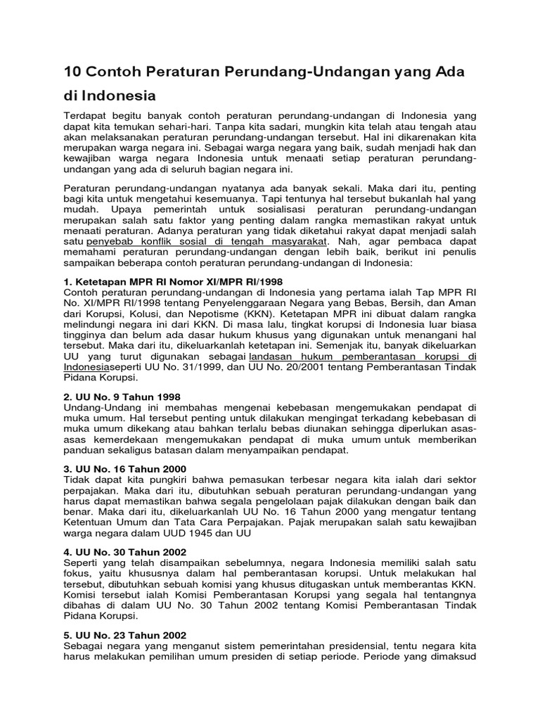 10 Contoh Peraturan Perundang DI INDONESIA