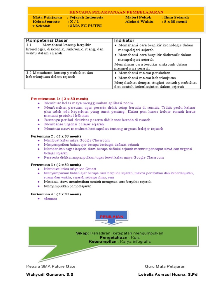 RPP SEJARAH INDONESIA KELAS X KD 3.2