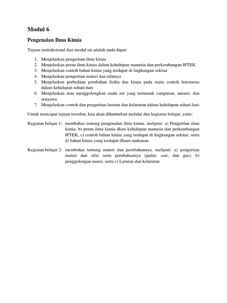 MODUL KIMIA KELAS X SEMESTER GANJIL PERUBAHAN MATERI dan PEMISAHAN CAMPURAN
