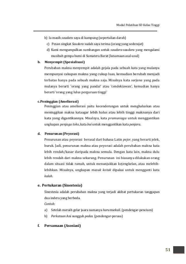 Contoh Perubahan Makna Meluas Menyempit Ameliorasi Peyorasi Asosiasi Sinestesia