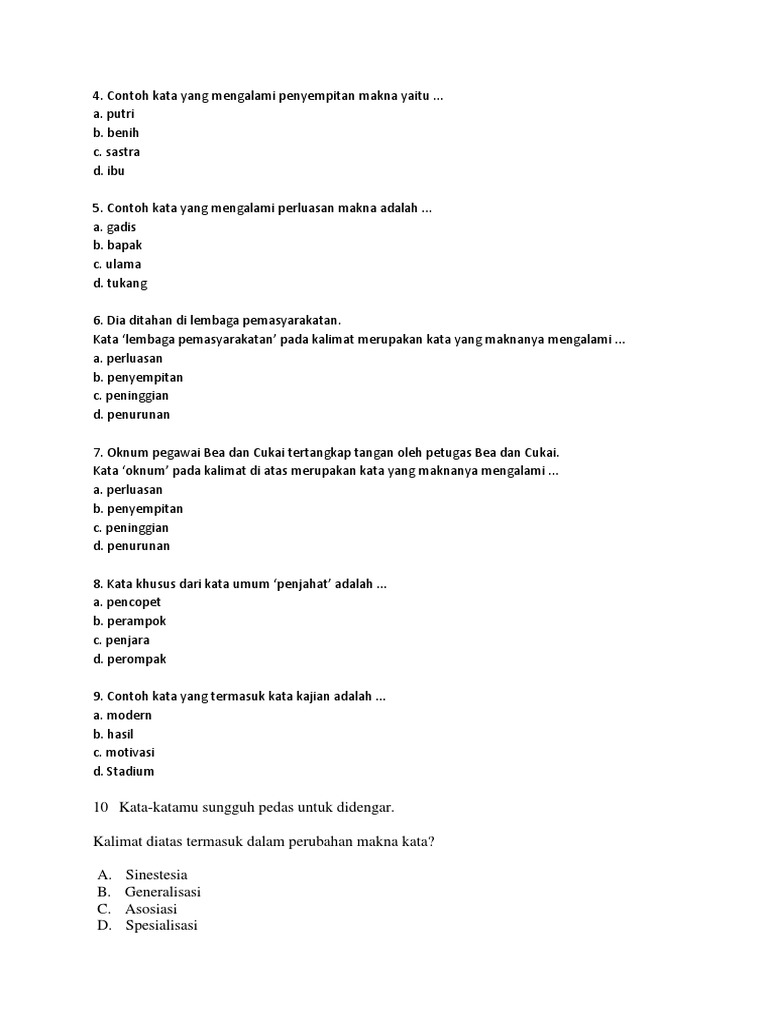 Berbagai perubahan makna yang dapat terjadi pada kata, apa saja …