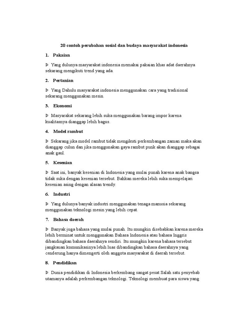 DOC) Contoh Perubahan Sosial Budaya Terlengkap | Mariana …