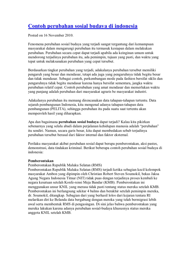 Diskusikan Contoh Perubahan Sosial Budaya Yang Terjadi Di …