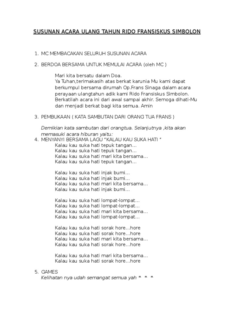 Susunan Acara Ulang Tahun Rido Fransiskus Simbolon