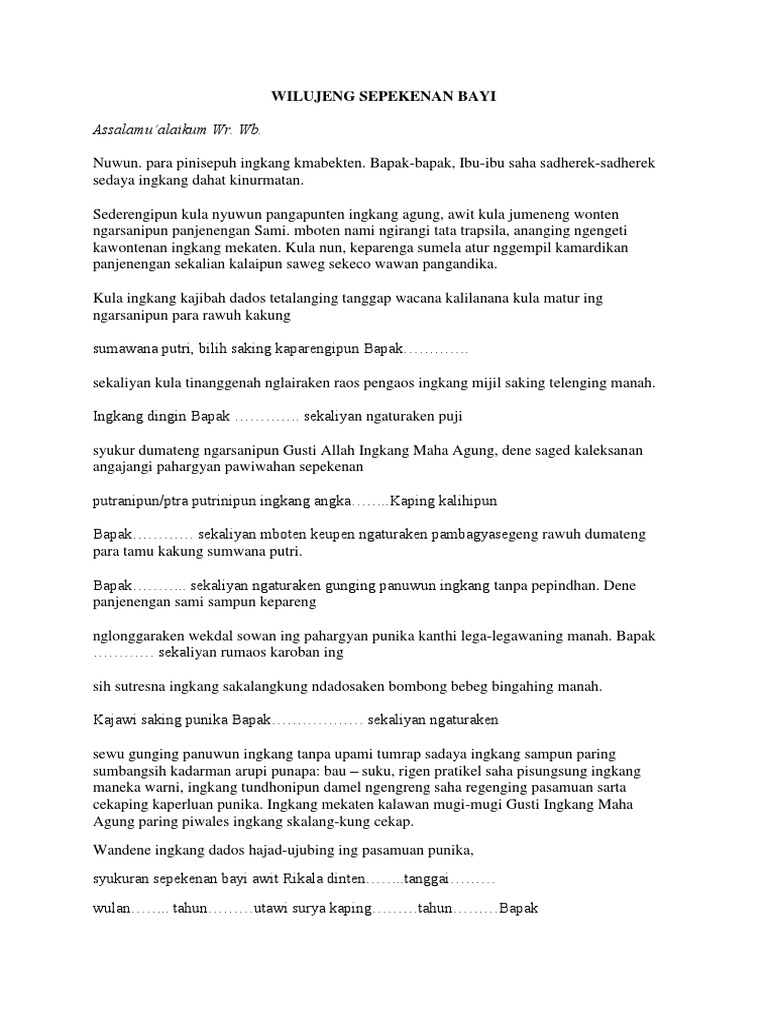 Contoh Isi Teks Naskah Sambutan Tuan Rumah Bahasa Jawa Muda - Free …