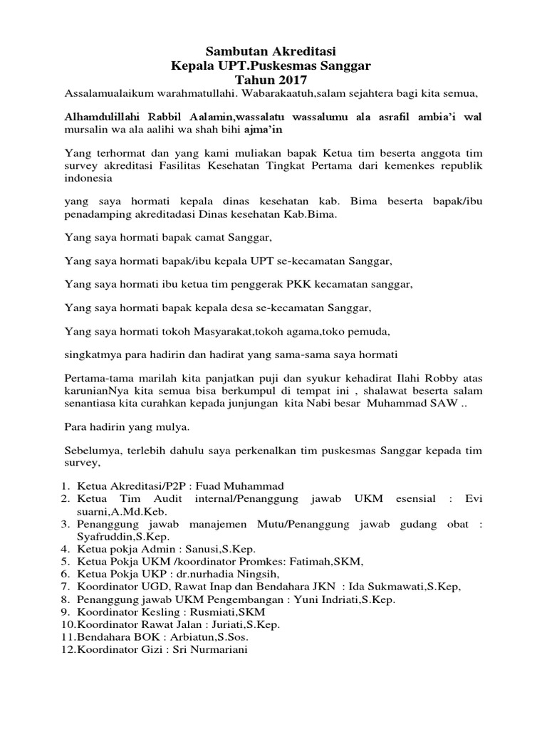 Pidato Sambutan Akreditasi KUP.puskesmas SANGGAR
