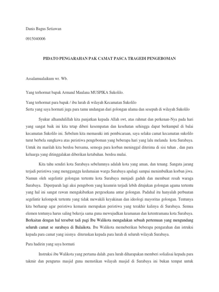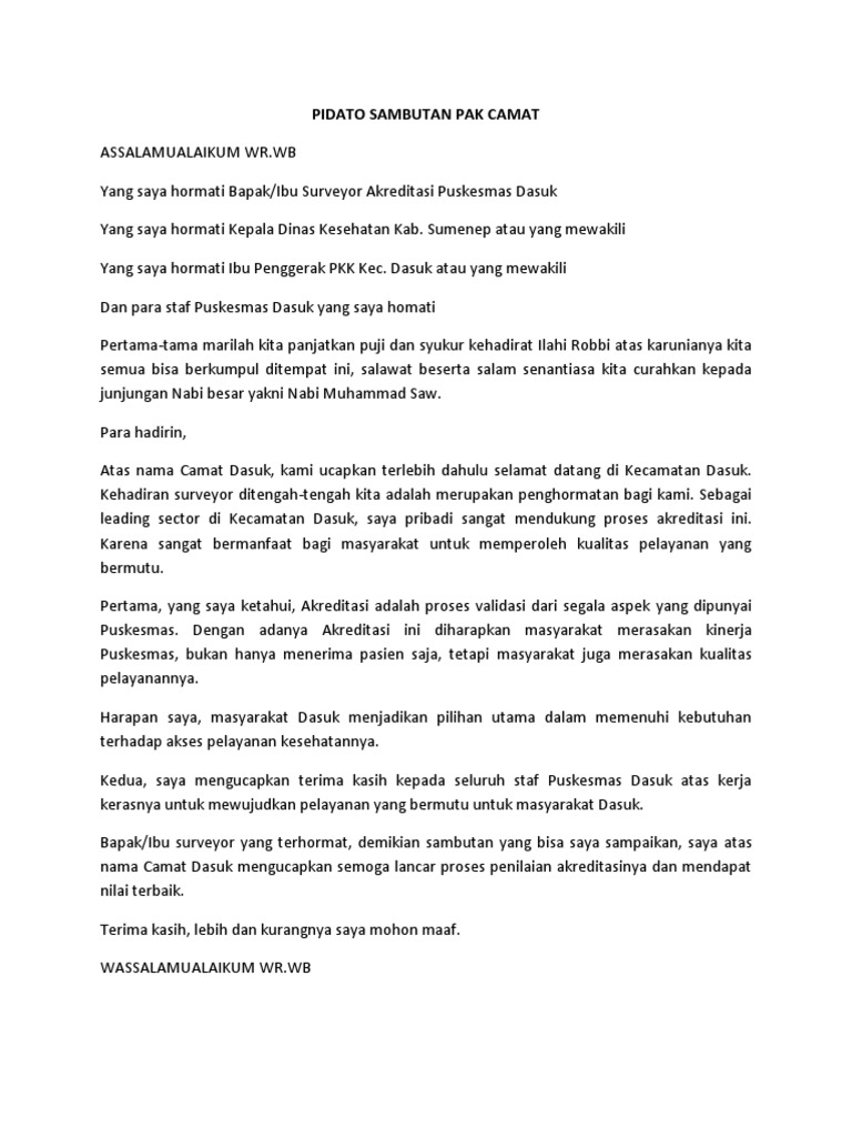 Contoh Kata Sambutan Camat | zona ilmu 8