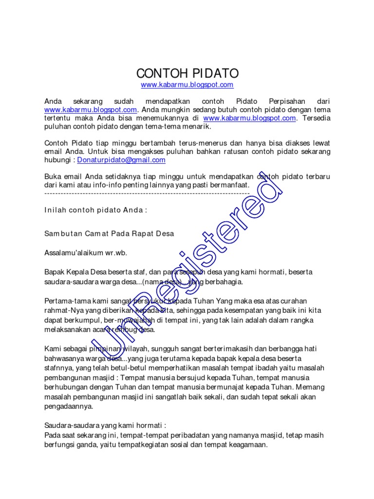 Contoh Pidato Sambutan Camat Pada Acara Pertemuan Desa - IDNOffice