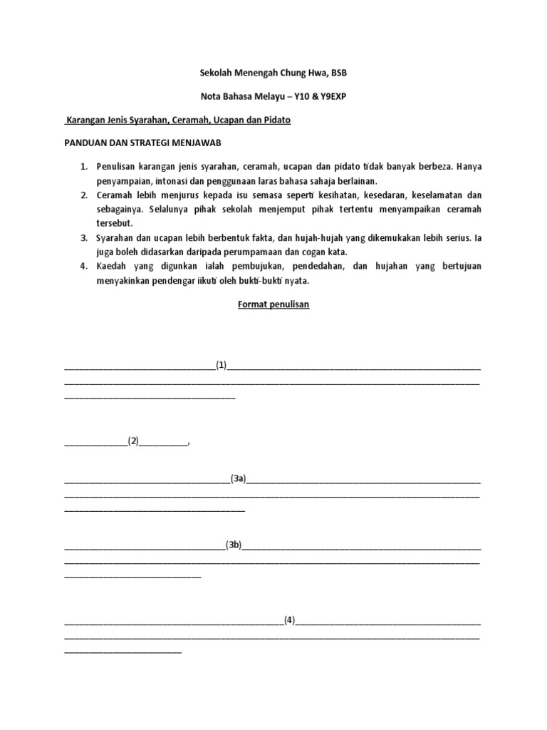 KARANGAN SYARAHAN, CERAMAH, UCAPAN, PIDATO
