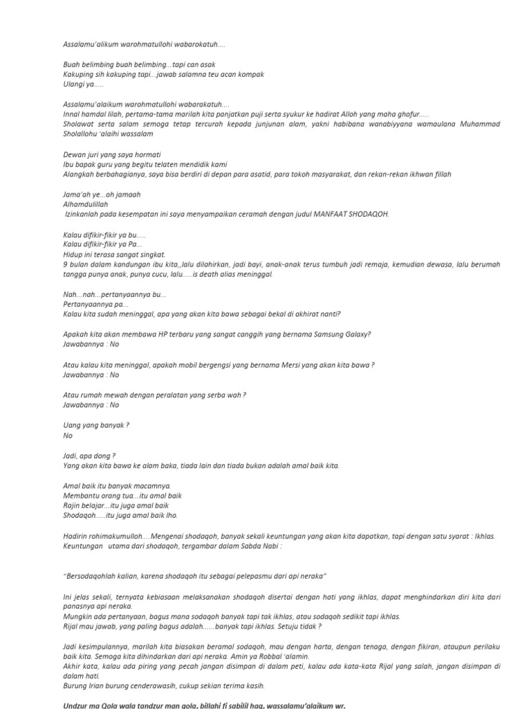 Teks Pidato Keutamaan Infaq Dan Shodaqoh
