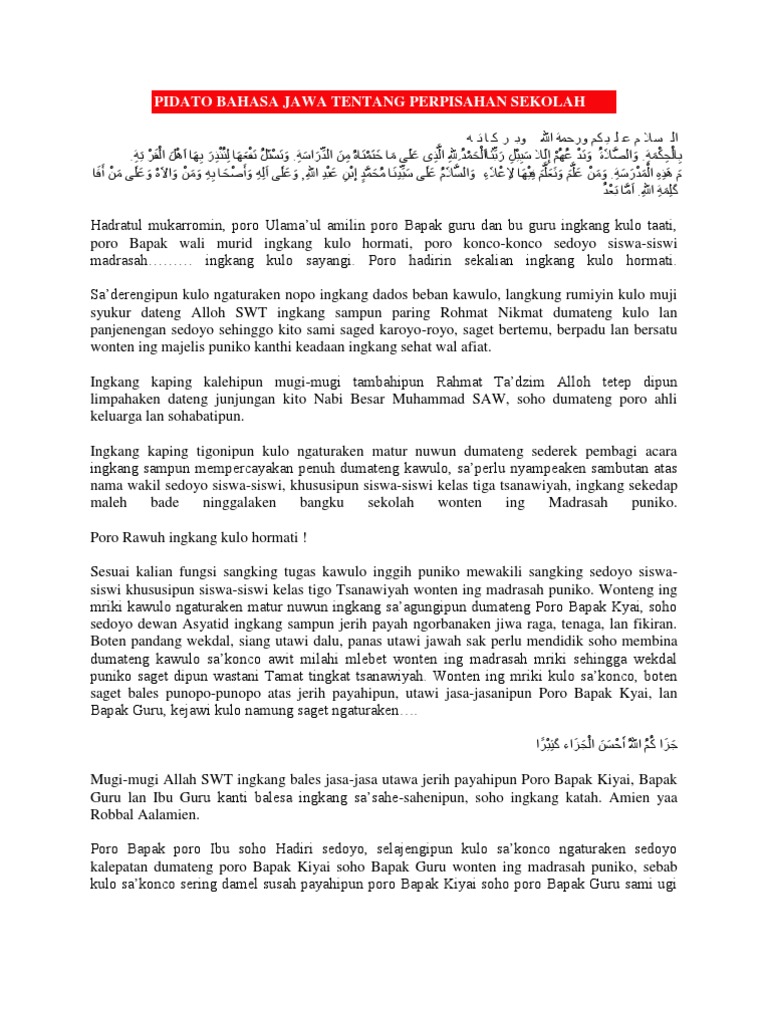 Naskah Pidato Bahasa Jawa Tema Perpisahan - lasopaja