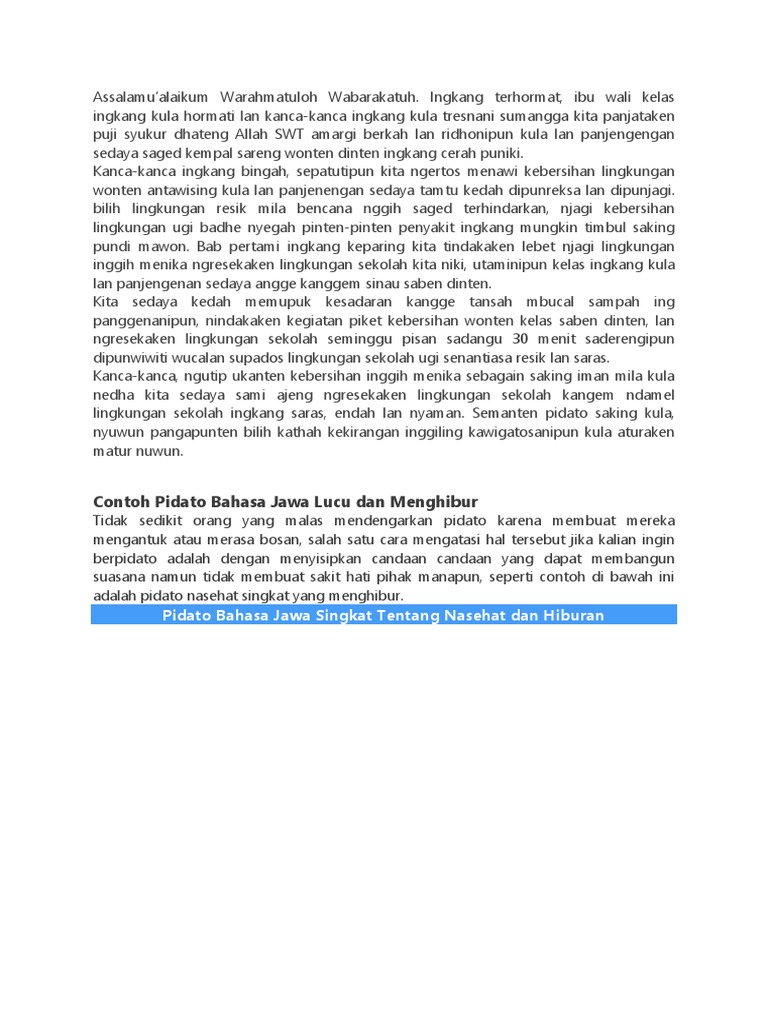 Contoh Pidato Bahasa Jawa Singkat Lucu | Blog Pendidikan