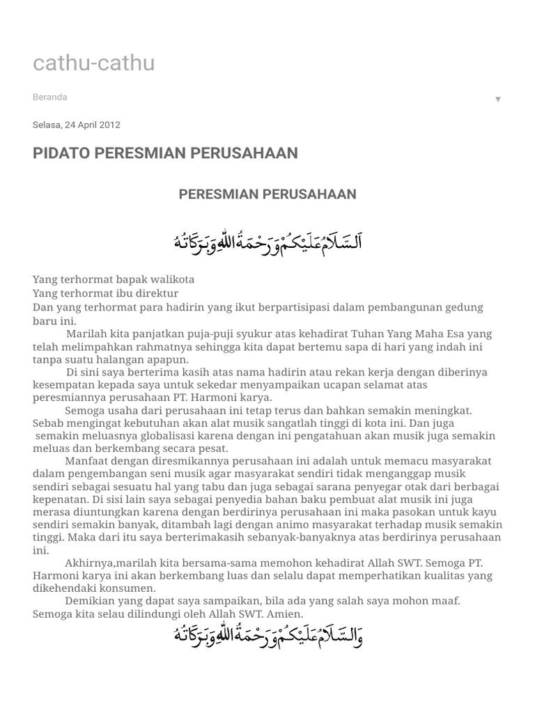 Pidato bahasa indonesia peresmian kantor