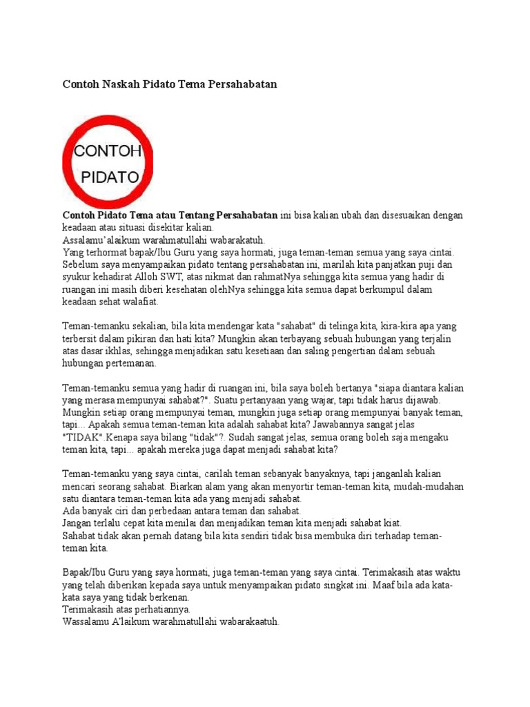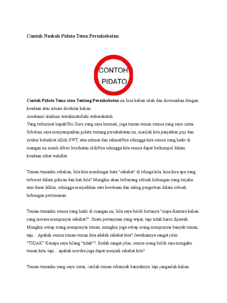 Contoh Naskah Pidato Tema Persahabatan - Pidato | speech