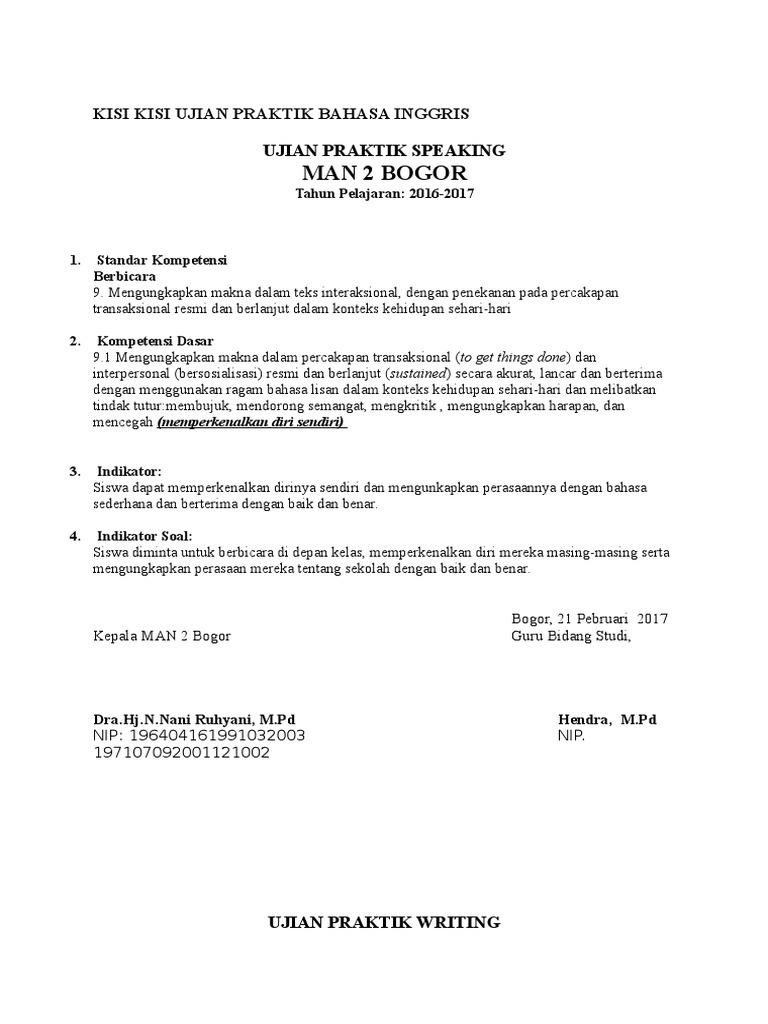 Kisi Kisi Ujian Praktek Bahasa Indonesia Smp 2019 - Guru Ilmu Sosial