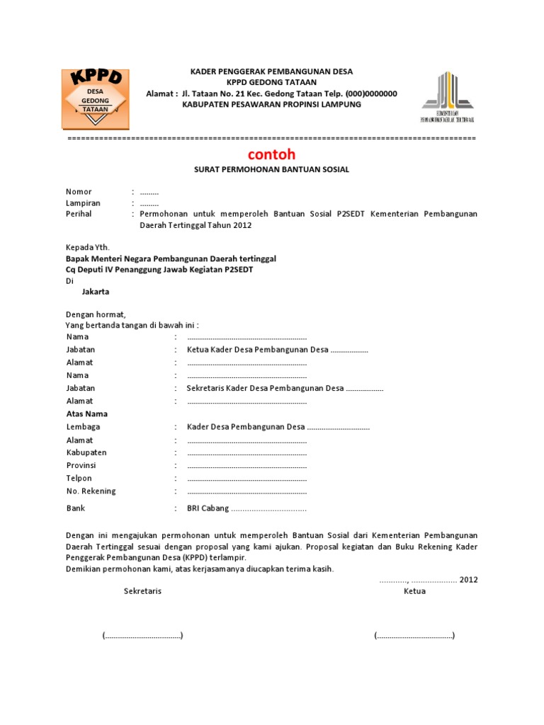 DOC) Contoh Proposal Permohonan Bantuan Dana dari Kementerian Sos | Daud Rumbewas - Academia.edu