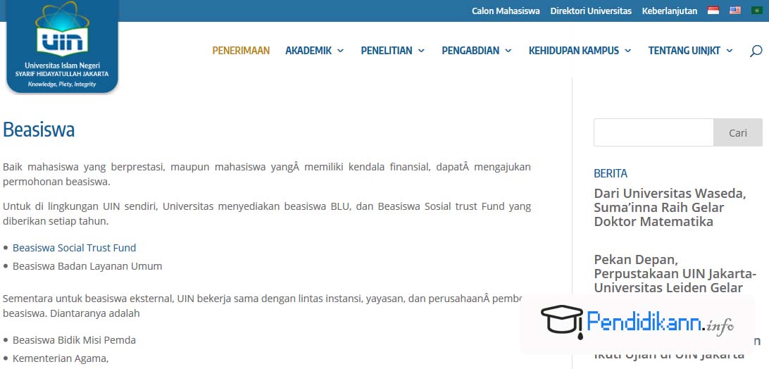 Info Beasiswa UIN Syarif Hidayatullah Jakarta