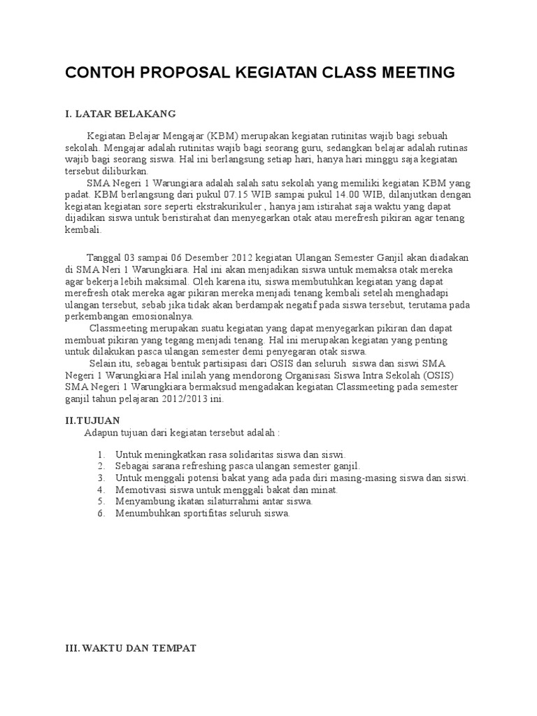 Contoh Proposal Kegiatan Class Meeting - [DOCX Document]