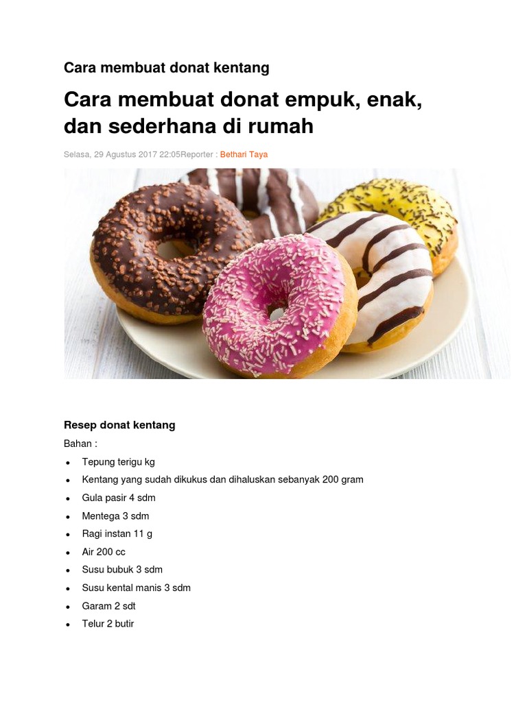 Resep Cara Membuat Donat Kentang Paling Empuk Dan Enak - Belajar menjadi blogger