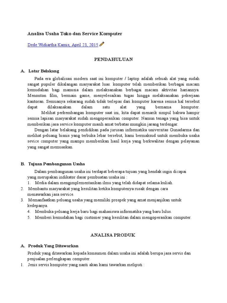 DOC) Proposal Membuka Usaha Servis Komputer | Arif P U J I Setiawan - Academia.edu