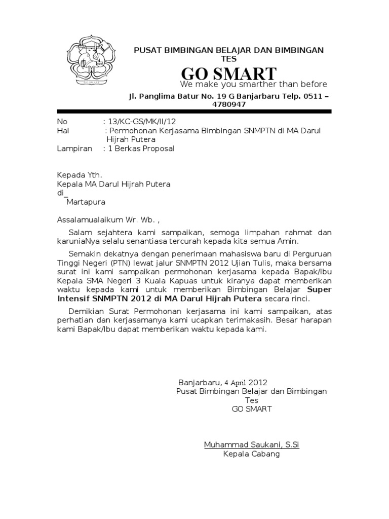 Contoh Surat Penawaran Kerjasama Bimbel Dengan Sekolah - Barisan Contoh