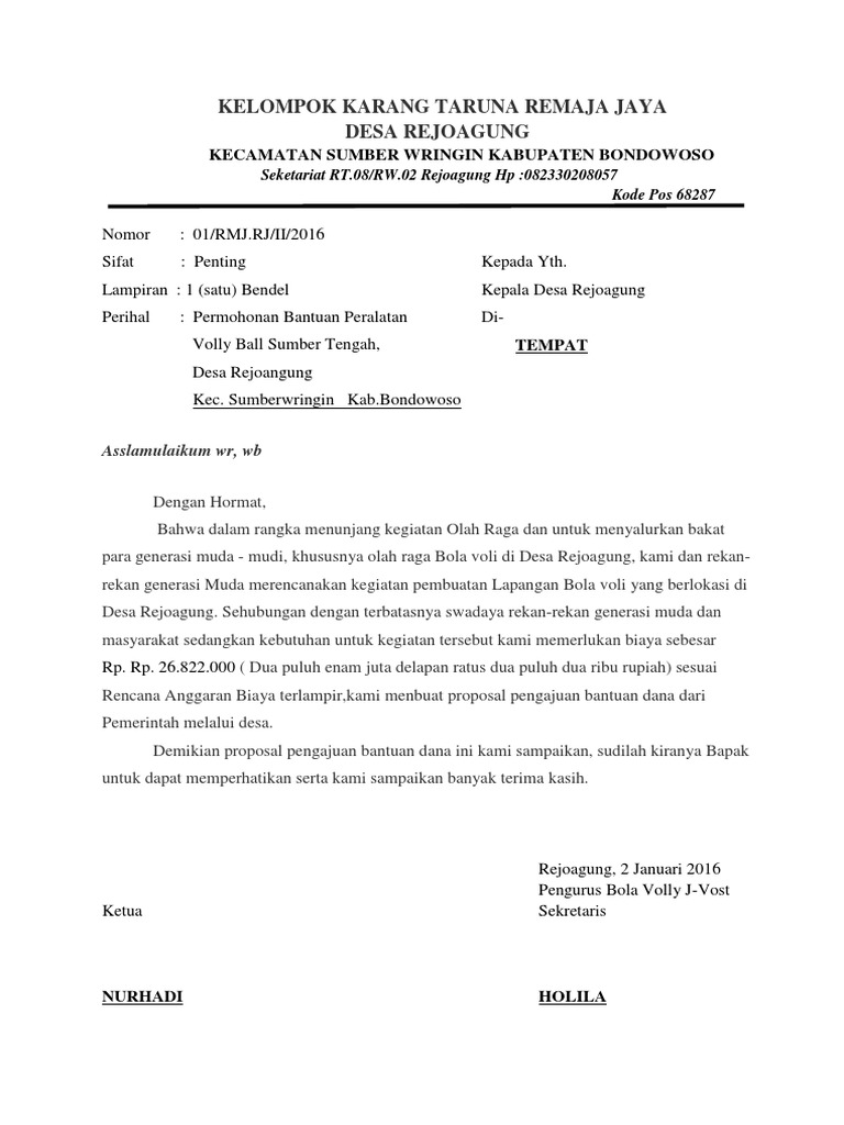 Contoh Surat Untuk Kepala Kantor Pora Dalam Pembuatan Proposal Bola Volley | MUDA MUDI CONDROWANGSAN