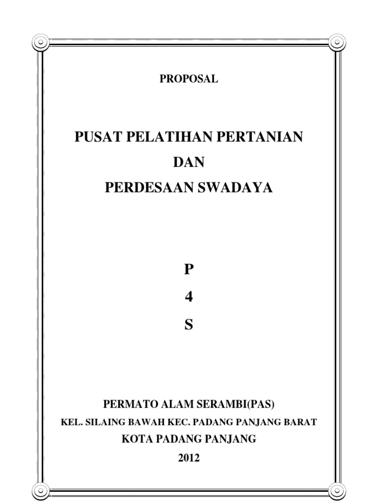 Kerangka Usulan Proposal Pusat Pelatihan Pertanian Dan Pedesaan Swadaya p4s Permato Alam Serambi Pendahuluhan