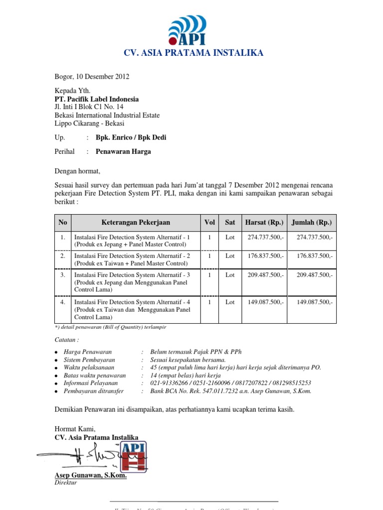 Contoh Surat Penawaran Pemasangan Acp - Job ID Site