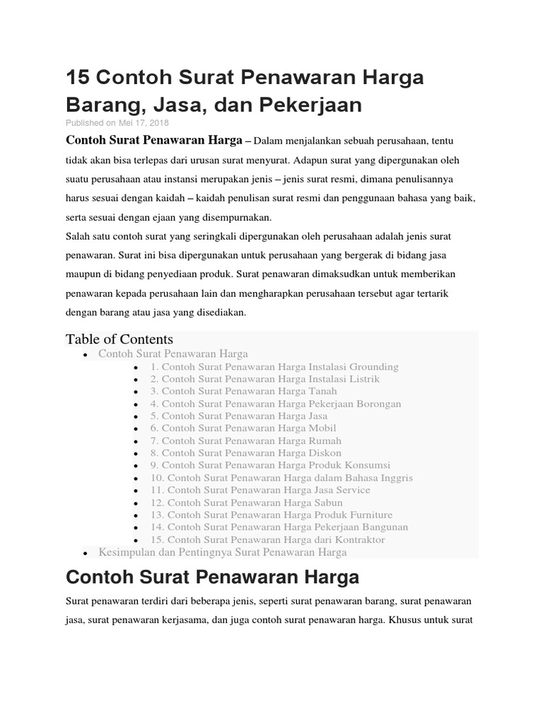 Contoh Surat Penawaran Harga Barang Pdf