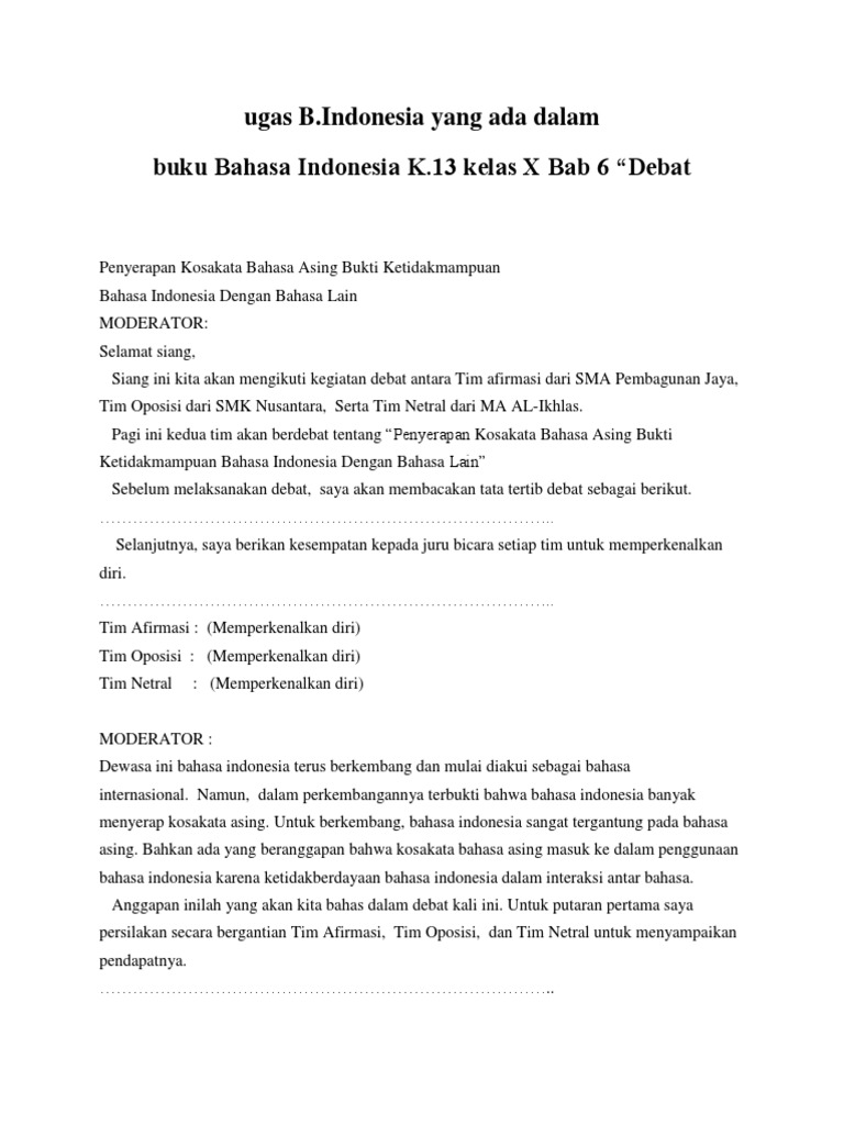 Contoh Soal Debat Bahasa Indonesia Sma - Contoh Soal Terbaru