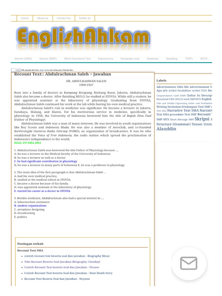 EnglishAhkam_ Recount Text__ Abdulrachman Saleh + Jawaban.pdf