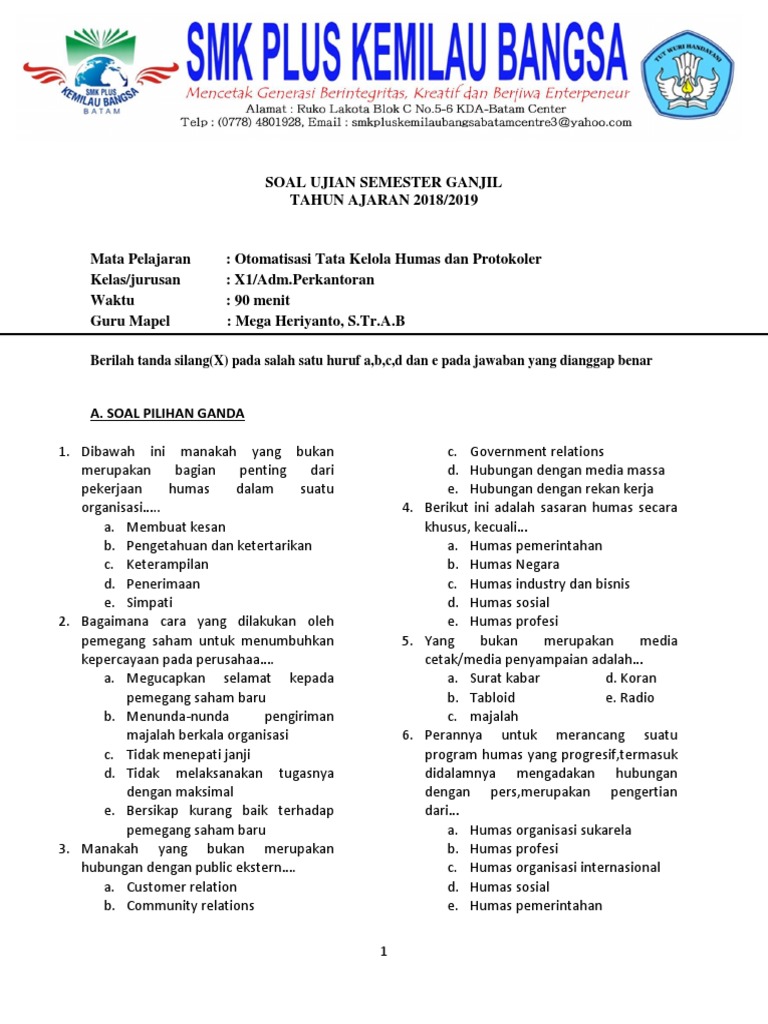 DOC) CONTOH SOAL ADMINISTRASI HUMAS DAN KEPROTOKOLAN SMK | Idan Rahdian - Academia.edu