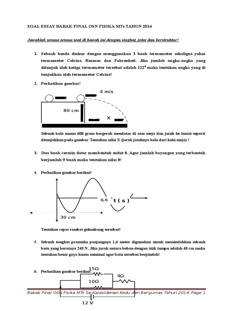 Contoh Soal Fisika Essay | Dunia seni dan sastra Indonesia