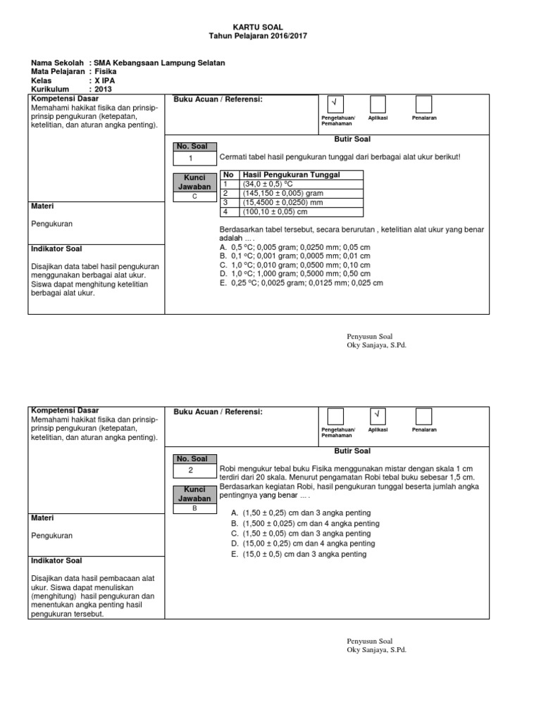 Kisi Kisi Ujian Fisika Kelas 10 - Guru Ilmu Sosial