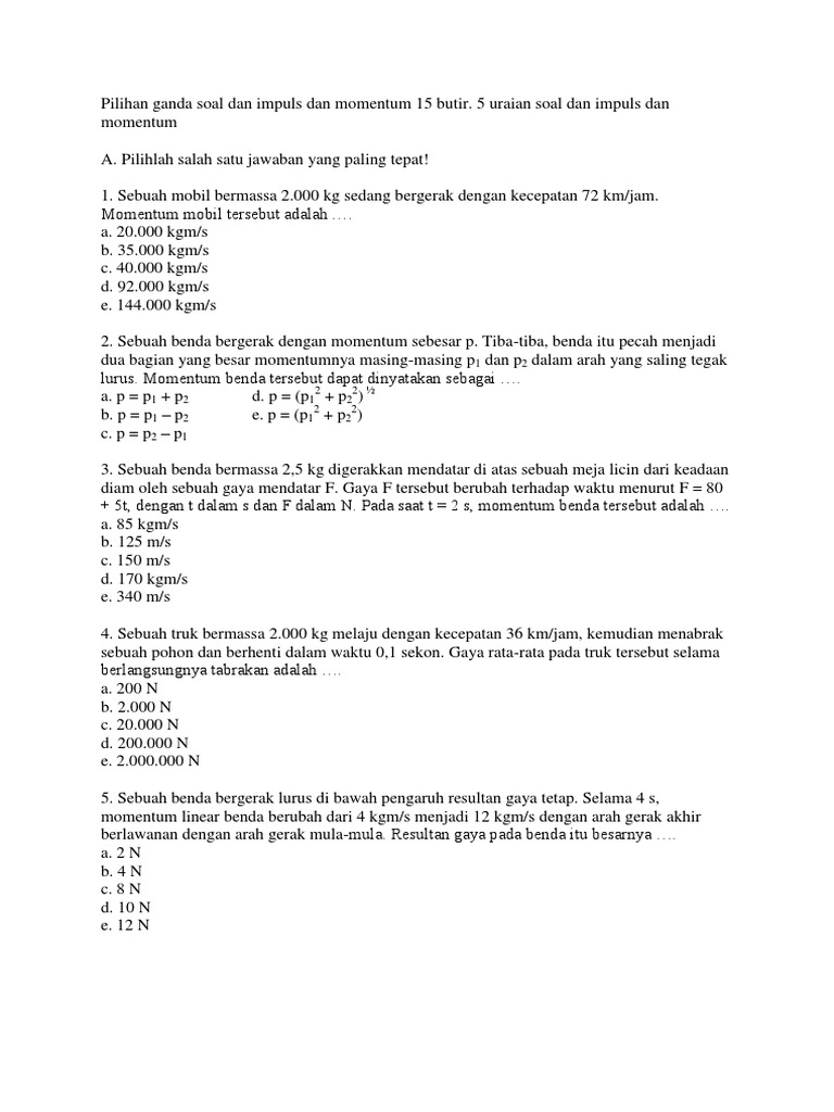 Pilihan Ganda Soal Dan Impuls Dan Momentum 15 Butir