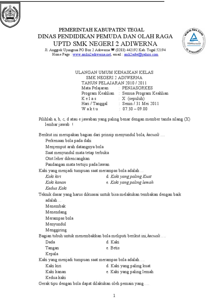 PDF) Contoh SOAL dan JAWABAN Penjaskes UTS 1 kurikulum 2013 | Rahmad Ramadlan - Academia.edu