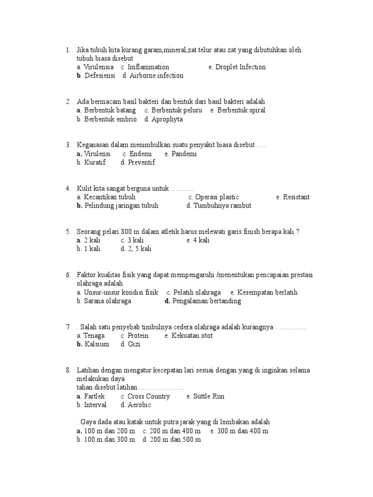Contoh Soal Penjas Kelas X Semester 1 Beserta Kunci Jawaban - Inputsoal.com