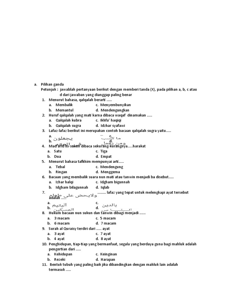 Contoh Soal Pilihan Ganda Qolqolah - Dunia Sosial