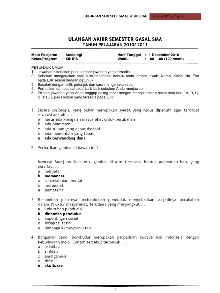 SOAL UAS SOSIOLOGI KELAS XII DAN KUNCI JAWABAN | SOAL UTBK SBMPTN 2021 DAN PEMBAHASAN [PDF]