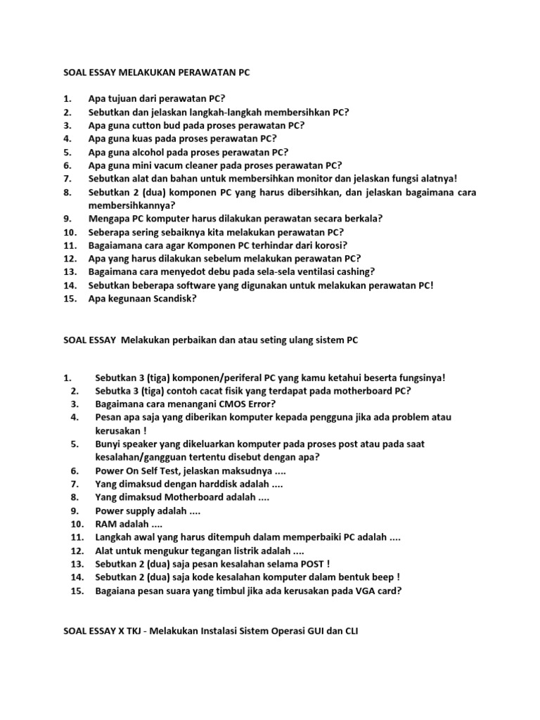 Soal Essay Melakukan Perawatan Pc