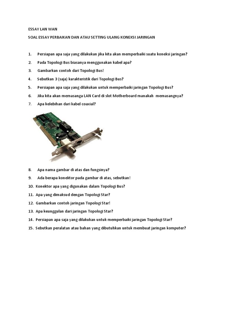 DOC) Soal Essay 1-10 TKJ | cakar lele - Academia.edu
