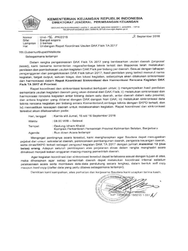 Surat Undangan RAKOR Usulan DAK 2017