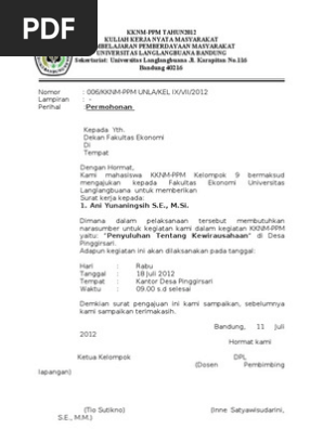 Contoh surat izin tidak masuk kuliah karena acara keluarga dan UKM | Belajar Office