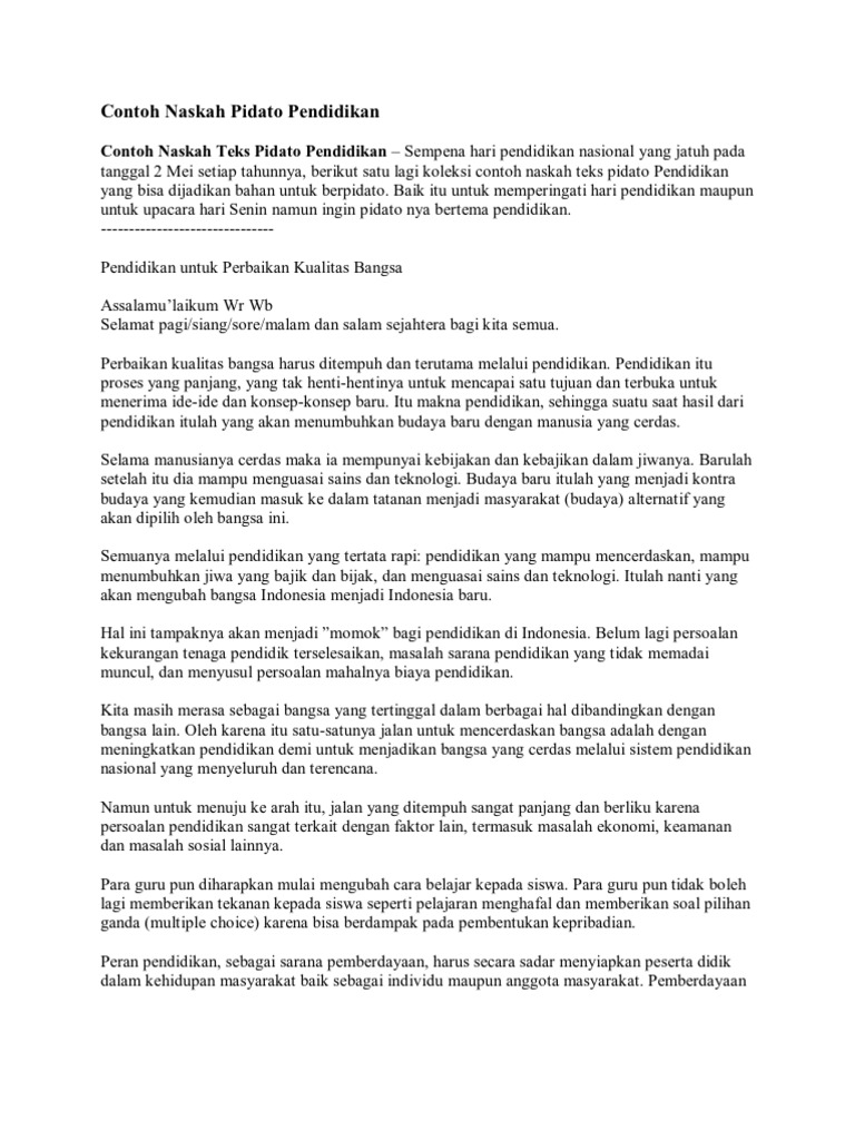 DOC) Contoh Teks Pidato Naskah Singkat Tema Pendidikan | Kang Taqwim - Academia.edu