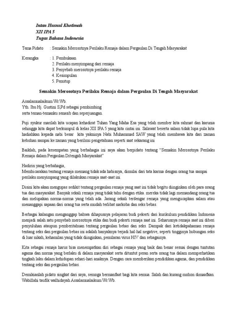 Contoh Teks Pidato Dengan Tema Pergaulan Remaja | ahmad fauzi - Academia.edu